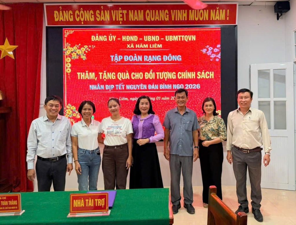 Nhân dịp Tết Nguyên đán Bính Ngọ 2026, phát huy truyền thống sẻ chia vì cộng đồng, Tập đoàn Rạng Đông đã đồng hành cùng chính quyền các phường Hàm Thắng, Phú Thủy, Phan Thiết, Mũi Né và các xã Suối Kiết, Tân Lập, Hàm Thạnh, Hàm Liêm, Tiến Thành, Tân Thành, Hàm Thuận, Hồng Sơn, Lương Sơn, Vĩnh Hảo, Hàm Kiệm thuộc tỉnh Lâm Đồng tổ chức chương trình thăm hỏi, động viên và trao tặng quà Tết cho các hộ nghèo, gia đình chính sách và những hoàn cảnh còn khó khăn trên địa bàn.